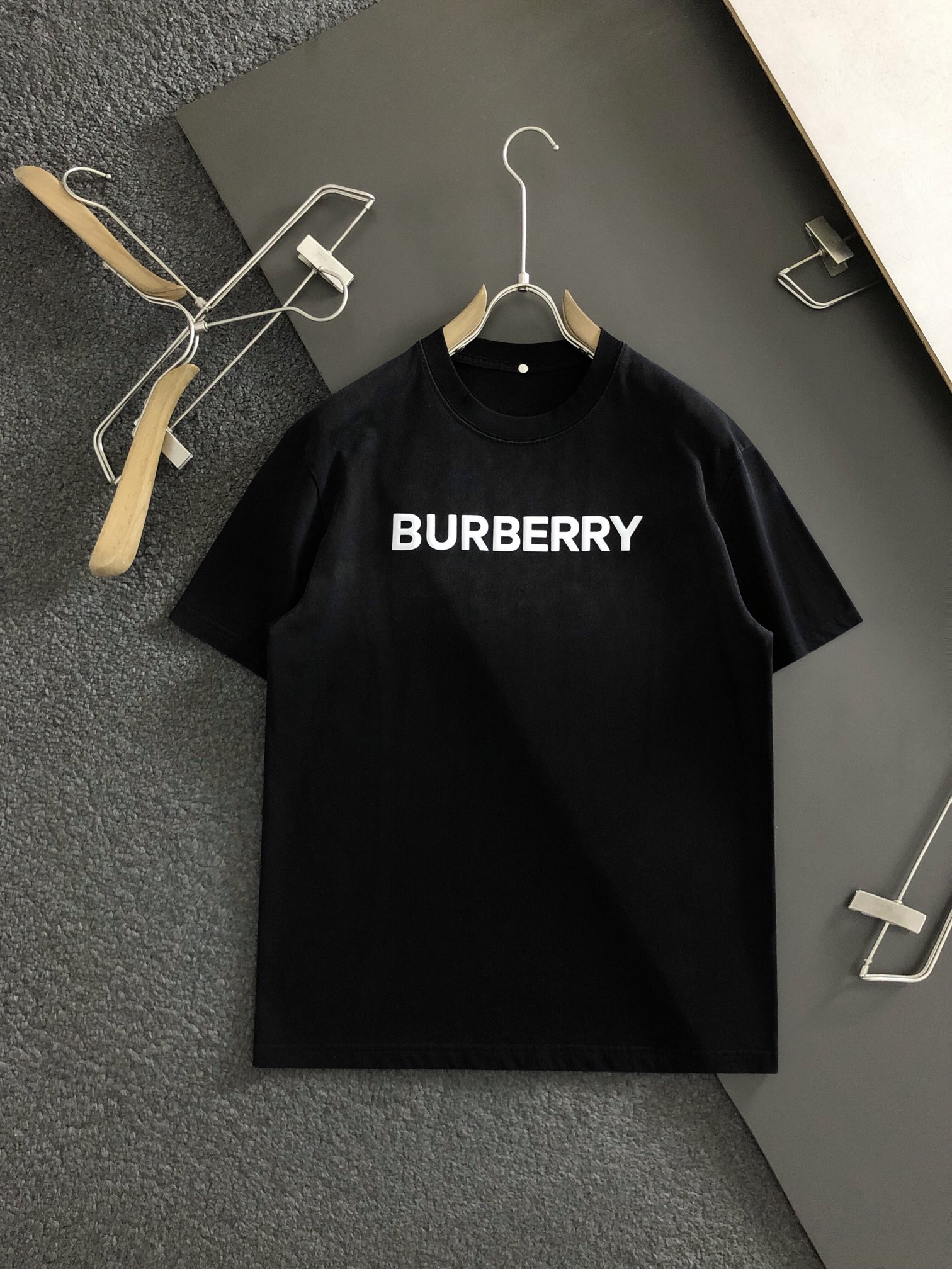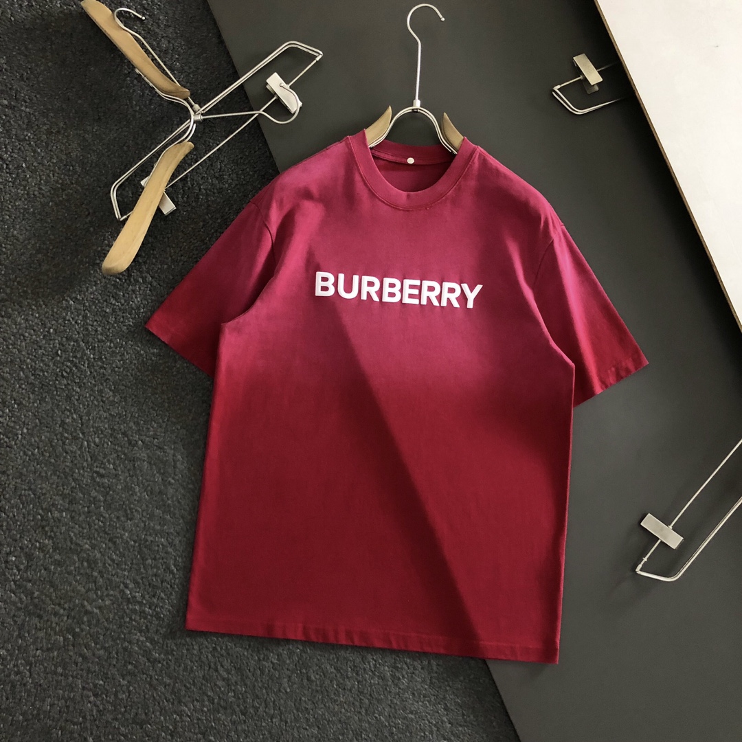 • New   Burberry Top grade black retro washed and printed trendy brand counter short sleeved